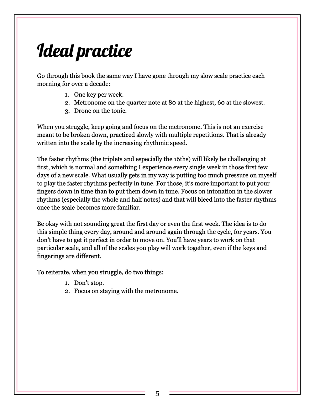 My goal in writing this book was to provide you with a framework for structuring your scales practice in the short and long term and teach you how to push yourself to grow in a way that leads to lasting change, not just fleeting success.
